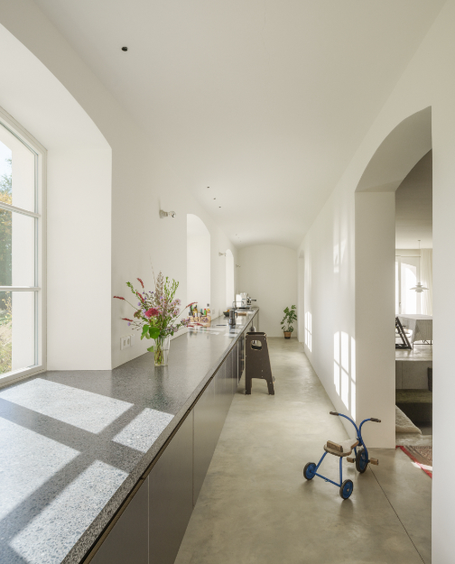 In den nördlichen Teil, dem sogenannten Kaplanhaus werden Büroräume integriert. Die vorhandene Raumstruktur und -größe ermöglicht eine langfristige Planung.